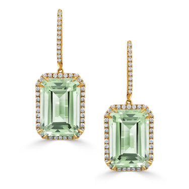 18KY Radiant Green Amethyst Diamond Halo Earrings