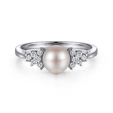 Gabriel & Co. - LR3607W45PL - 14K White Gold Classic Cultured Pearl Diamond Accented Stackable Ring