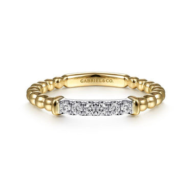 Gabriel & Co. - LR51786M45JJ - 14K White-Yellow Gold Bujukan Bead Band with Diamond Pav‚ Center Bar