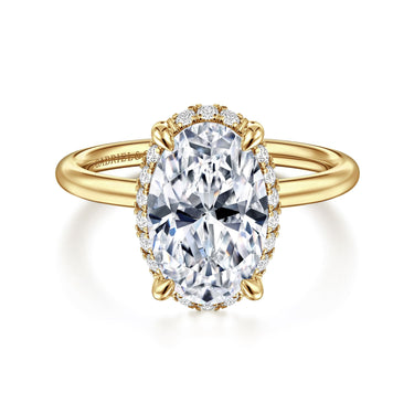 14K Yellow Gold Oval Hidden Halo Diamond Engagement Ring