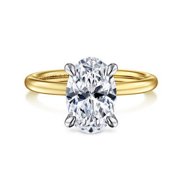 14K White-Yellow Gold Hidden Halo Oval Diamond Engagement Ring