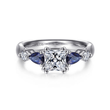 Indulge in timeless elegance with our exquisite 14K White Gold Princess Cut Five Stone Sapphire and Diamond Semi-Mount Engagement Ring. This enchanting piece is meticulously crafted to cradle your chosen diamond or gemstone, allowing your unique love story to shine through. The ring features a breathtaking symphony of alternating princess-cut sapphires and diamonds, each stone set to perfection to enhance the brilliance of your center stone. The cool, lustrous hue of the white gold band serves as a sophisticated backdrop, elevating the allure of your selected centerpiece. Designed for those with discerning taste, this ring is not just a symbol of commitment but a testament to unparalleled luxury and personal expression.