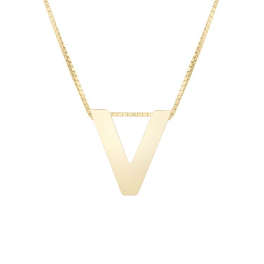14K yellow gold polished initial V on an 18 inch box chain necklace with lobster clasp