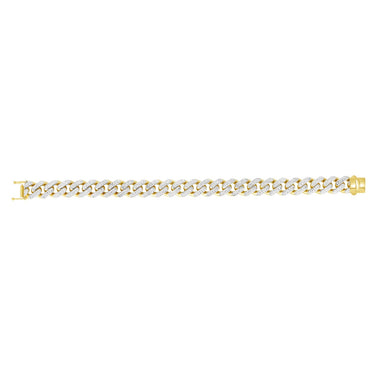 14kt Gold 22" Yellow Finish 11.3mm White Pave Curb Link Bracelet with Box with Both Side Push Clasp