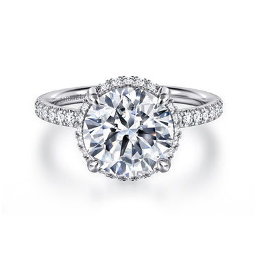 14K White Gold Round Hidden Halo Diamond Engagement Ring